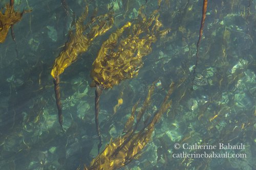 Kelp sways with the current in the clear waters of the Salish Sea. Du varech se balance au gré du courant dans les eaux limpides de la mer des Salish.