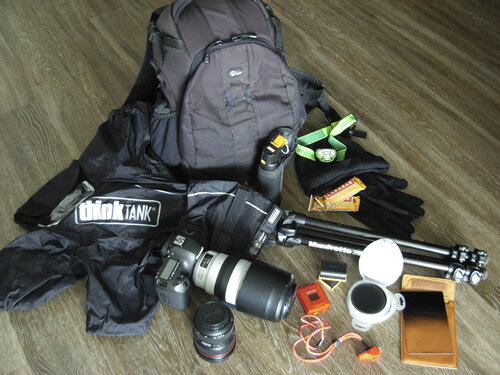 My camera is a Canon EOS 5DS R. My go-to lenses are Canon EF 24-70 mm f/2.8L II USM and Canon EF100-400mm f/4.5-5.6L IS II USM. I use polarizing filters and ND filters. My tripod is a Manfrotto. I use a ThinkTank rain cover, it fits my biggest lens and the sleeves keep my hands dry and warm. It is also very light. I highly recommend to invest in a high-quality rain cover. I carry fully-charged extra batteries and extra memory cards. As soon as I get back home, I recharge the batteries. I am always ready to go!