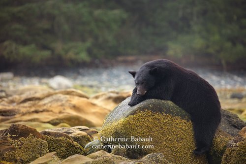 A black bear takes a nap after overindulging on salmon on Vancouver Island, British Columbia. Un ours noir fait la sieste après avoir mangé trop de saumon sur l’île de Vancouver, en Colombie-Britannique.
