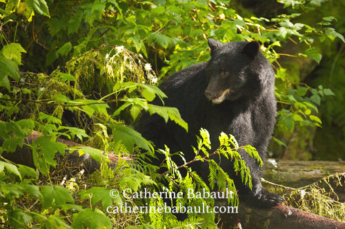 Entre 8 000 et 10 000 ours noirs vivent sur l’Île de Vancouver. Les opportunités d’en rencontrer un étant élevées, il vaut mieux en apprendre davantage sur l’espèce. Je suggère d’établir un réseau de spécialistes comme des officiers de la conservation, des biologistes et des photographes animaliers locaux bien informés. La meilleure période de l’année pour observer les ours est lors de la fraie du saumon lorsque les ours convergent vers les estuaires et les rivières pour s’engraisser de saumon avant l’hibernation.