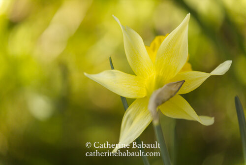 J’ai choisi de photographier l’arrière de cette fleur parce que je voulais créer un portrait original, j’ai donc utilisé une perspective différente que la photo classique de fleurs. Pour avoir l’arrière-plan flou, j’ai réduit la profondeur de champs en optant pour une ouverture de diaphragme élevée de f/5.6. Afin de démontrer la profondeur de champs dans une composition, j’ai pris une deuxième photo avec une ouverture de diaphragme réduite de f/14 : on voit plus de détails en arrière-plan car la profondeur de champs est plus large.